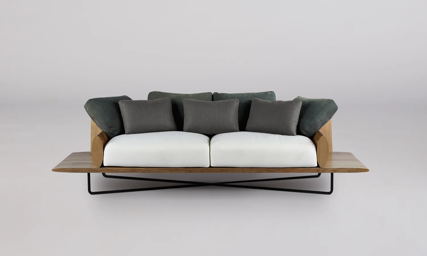 LEATHER AND/OR FABRIC CUSHION. STEEL OR STAINLESS STEEL BASE. VENEER OR SOLID WOOD STRUCTURE. POSSIBLE EXTRA FITTINGS: SINGLE, DOUBLE TRIPLE, QUADRUPLE SEATS. L-SHAPE. OTTOMAN.